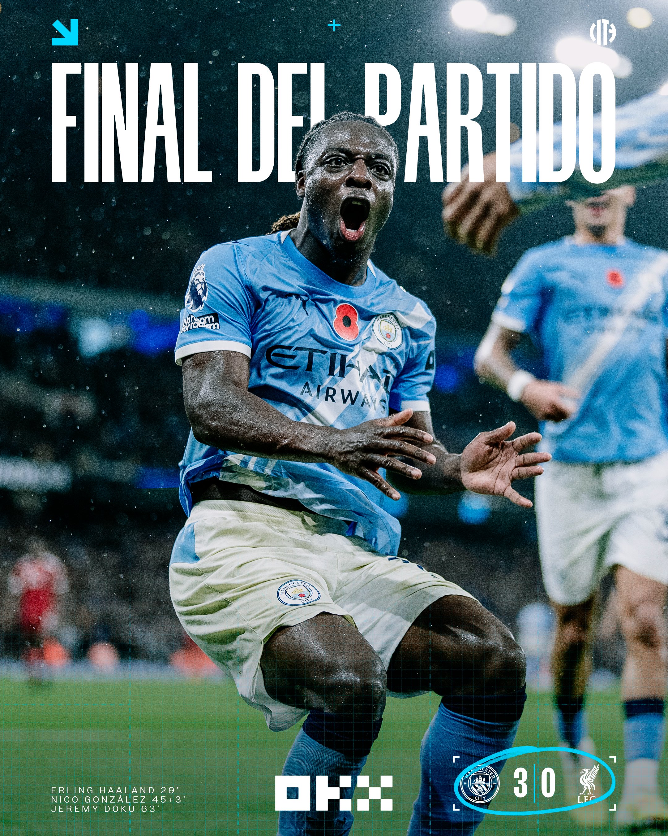 Man City: Haaland (29'), Nico (45'+3), Doku (63')