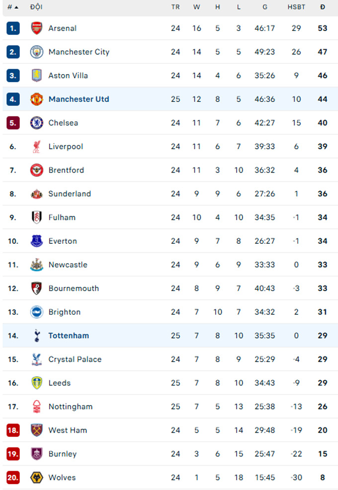 Như vậy, MU đã tiếp tục toàn thắng dưới thời HLV Carrick với 4 chiến thắng liên tiếp, giúp họ xây chắc vị trí thứ 4 với 44 điểm sau 25 vòng đấu. Ở vòng 26, MU sẽ làm khách trước West Ham vào ngày 11/2.