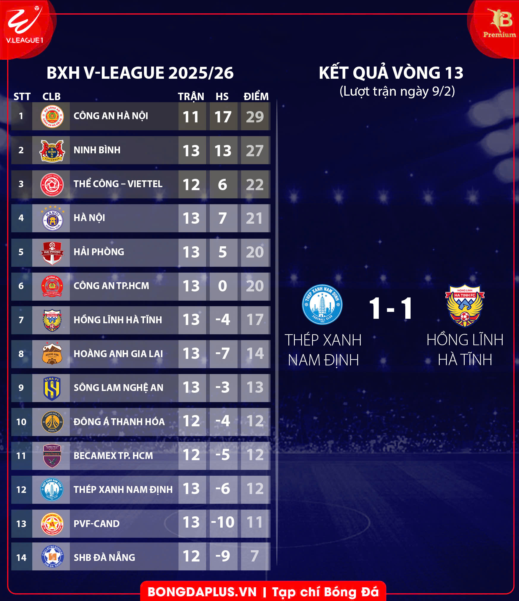 | V.League 1 - Vòng 13 | |||
