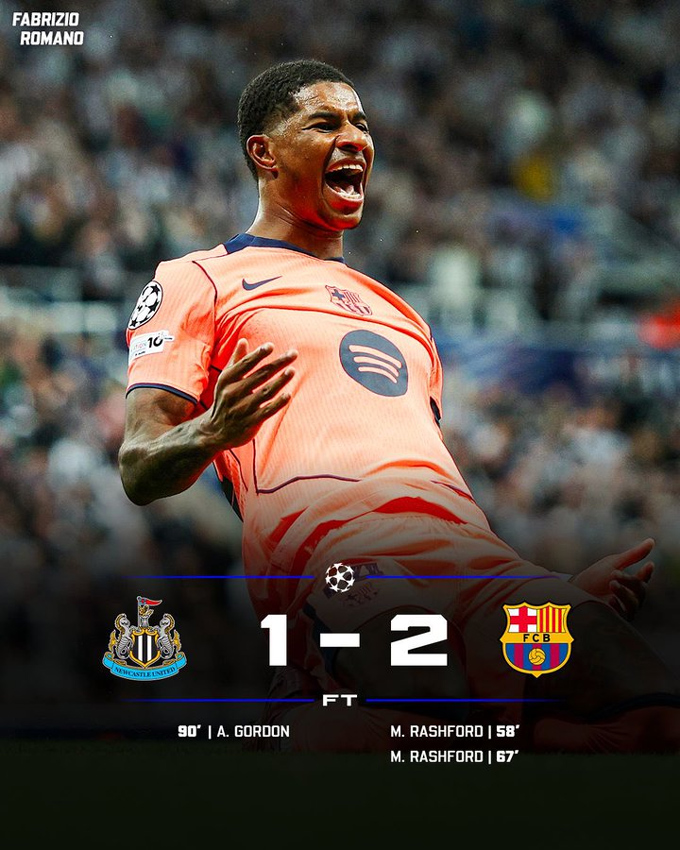 Kết quả Newcastle 1-2 Barca: Rashford thăng hoa rực rỡ