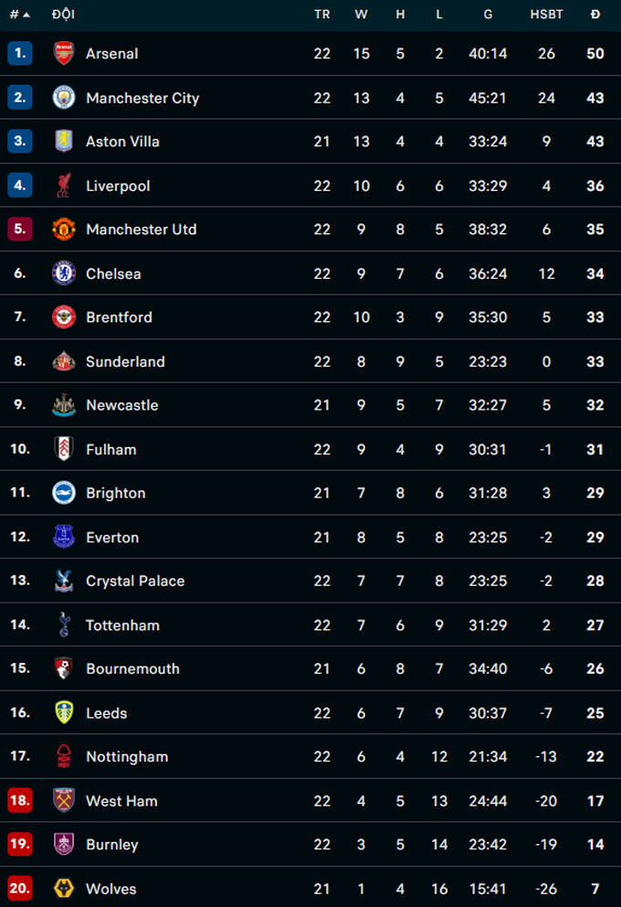 Dù vậy, Arsenal vẫn gia tăng khoảng cách lên thành 7 điểm với Man City trên BXH Ngoại hạng Anh 2025/26.