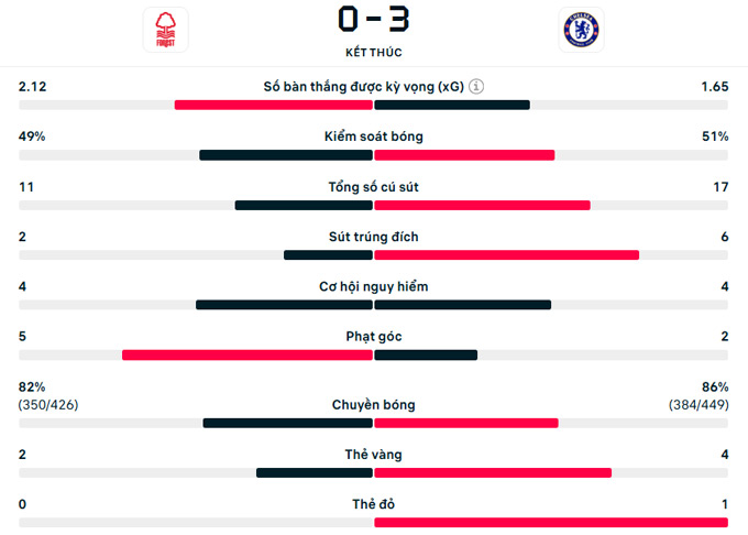 Phút 49, Neto đi bóng dũng mãnh bên cánh trái rồi lật vào để hậu vệ trẻ Josh Acheampong bật cao đánh đầu tung lưới Nottingham phá vỡ thế quân bình. Chưa đầy 5 phút sau, cách biệt đã được nhân đôi cho Chelsea. Lần này, đích thân Neto tỏa sáng với pha sút phạt hàng rào quyết đoán.
