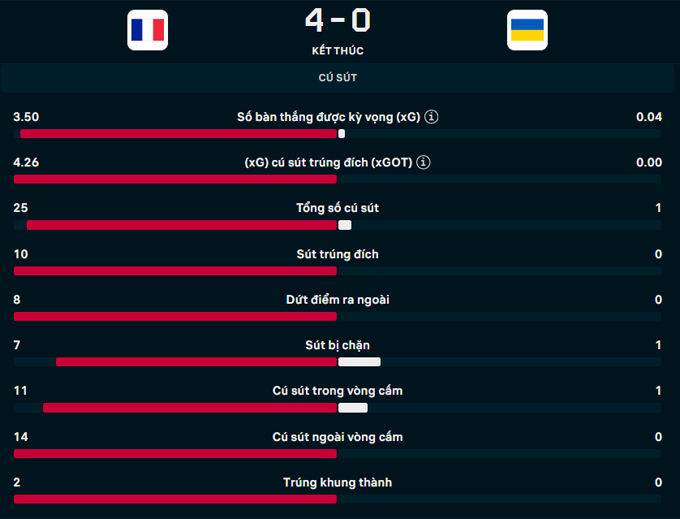 Pháp dễ đá hơn sau khi có bàn thắng khai thông bế tắc. Sau khi Ekitike sút dội cột ở pha đối mặt Trubin, phút 76 Olise nâng tỷ số lên 2-0. Đến phút 83, Mbappe đã có cú đúp khi anh có mặt để đá bồi tung lưới Ukraine.