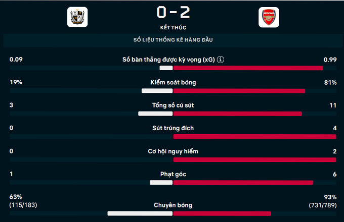 Ở trận này, HLV Mikel Arteta tung ra đội hình giàu sức tấn công với Saka, Martinelli, Eze và T năng trẻ Nwaneri. Tuy nhiên, “Pháo thủ” không thể tạo ra “cơn mưa” bàn thắng như kỳ vọng.