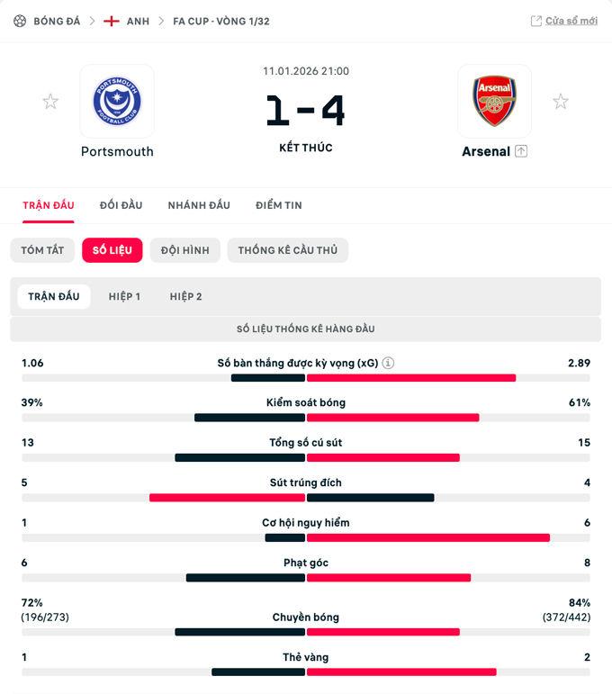 Bàn thắng Portsmouth vs Arsenal
