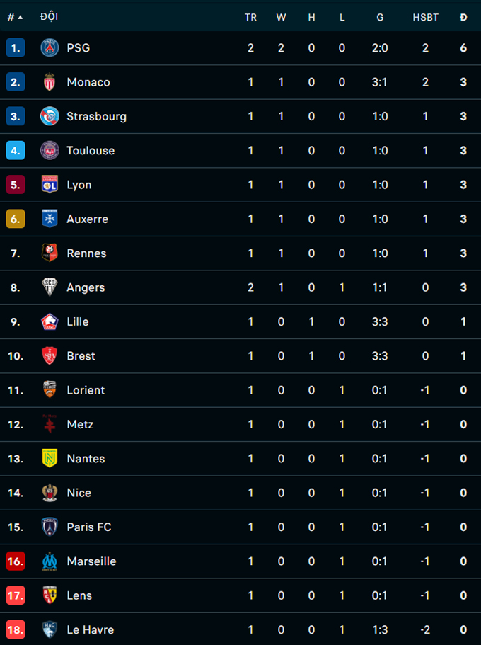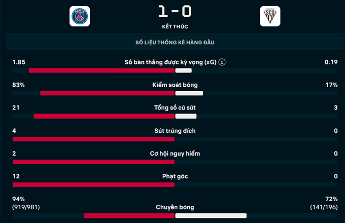 Chính vì vậy, họ không ghi thêm bàn nào nên chỉ thắng chung cuộc 1-0. Chiến thắng này tạm đưa PSG lên ngôi đầu Ligue 1 với 6 điểm trong tay.