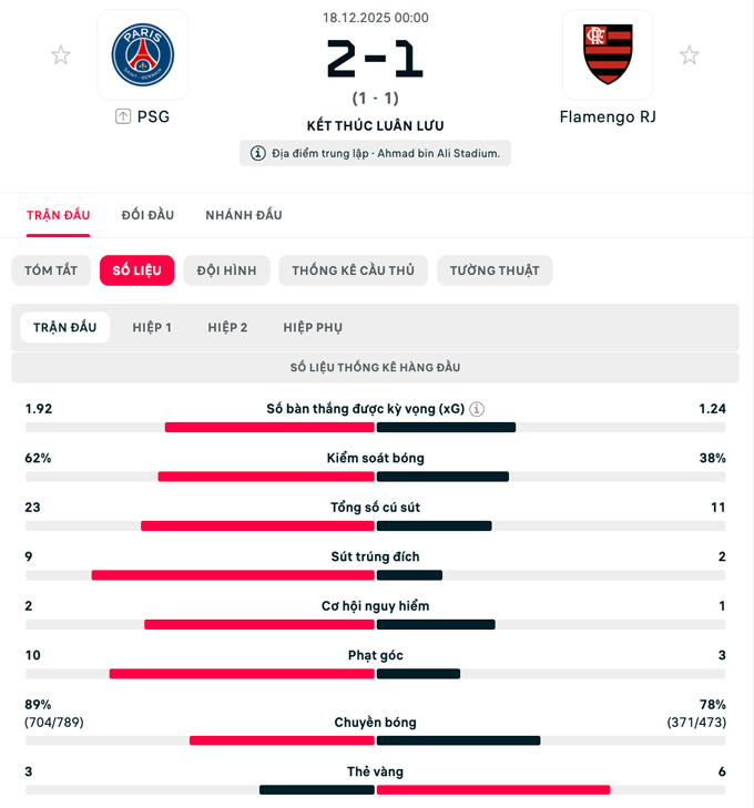 Kết quả PSG 1-1 Flamengo (pen 2-1): PSG giành Cúp Liên lục địa