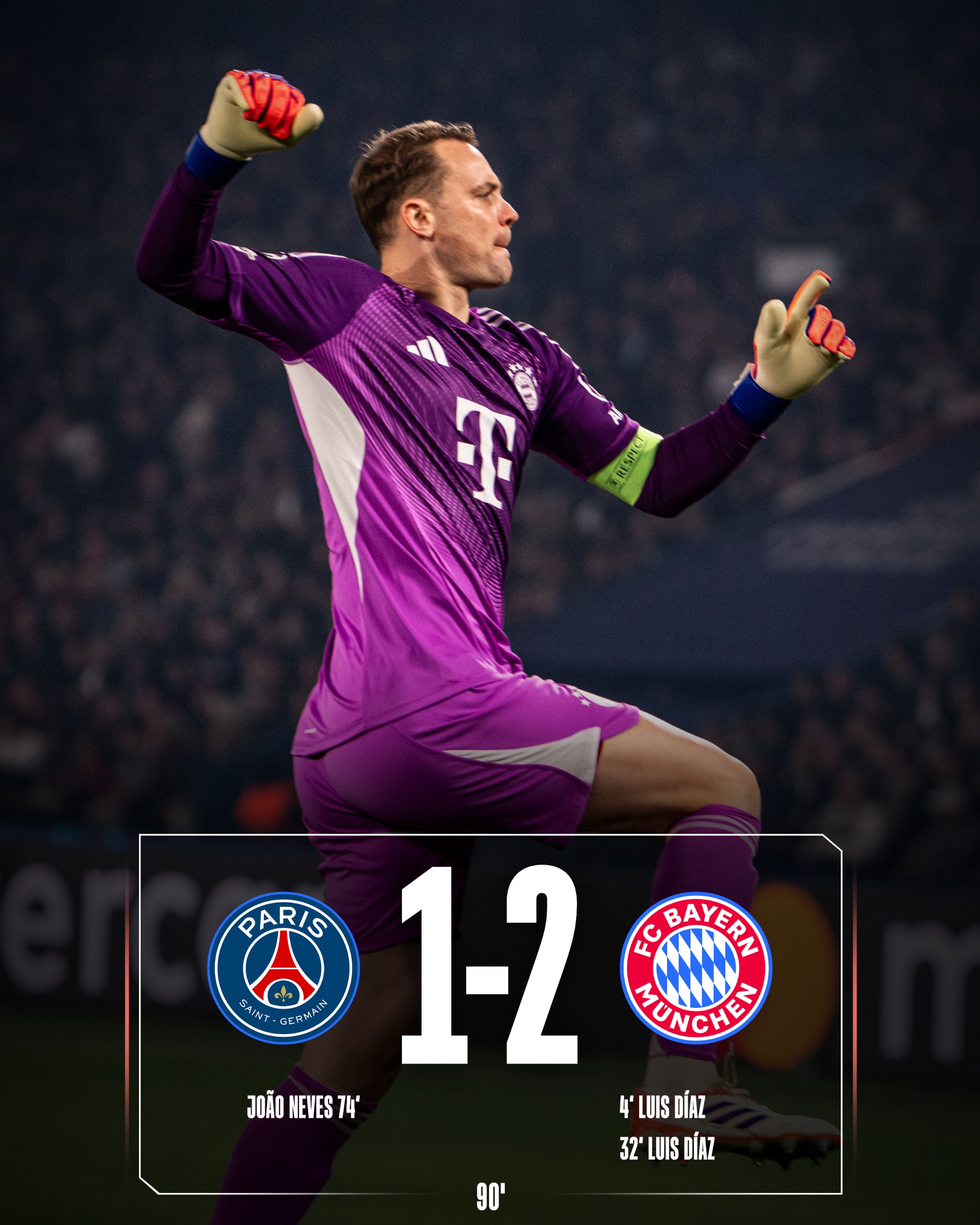 Dù phải làm khách trên sân của đương kim vô địch PSG, Bayern Munich mới là đội thi đấu lấn lướt. Ngay phút thứ 4, Luis Diaz đã đưa đội bóng nước Đức vươn lên dẫn bàn.