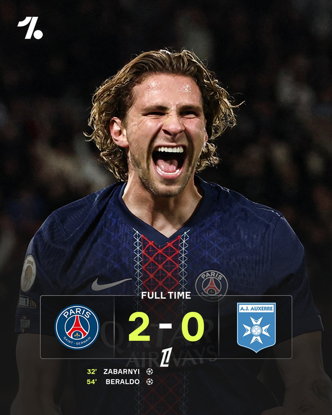 Sau giờ nghỉ, PSG nhập cuộc đầy hứng khởi và lập tức tạo ra cơ hội từ Barcola trước khi nhân đôi cách biệt từ một tình huống phạt góc. Sau pha phối hợp với Lee Kang-in, Mayulu tung đường tạt bóng chuẩn xác để Beraldo bật cao đánh đầu nâng tỉ số lên 2-0.