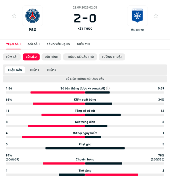 Kết quả PSG 2-0 Auxerre: Nối dài mạch thắng lên con số 5