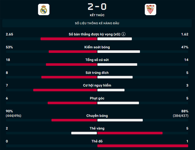 Kết quả Real Madrid 2-0 Sevilla: Bellingham và Mbappe giúp Los Blancos thắng trận