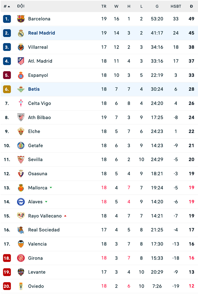| La Liga - Vòng 22 | |||