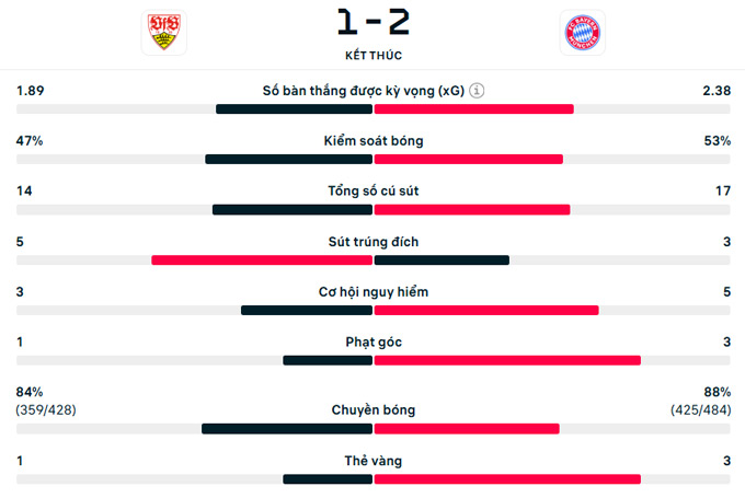 Đón quả treo bóng vào như đặt của Serge Gnabry, Diaz bật cao đánh đầu chuẩn xác tung lưới Stuttgart. Những nỗ lực của đội bóng áo trắng chỉ giúp họ ghi bàn danh dự vào phút bù giờ thứ ba nhờ công của tiền đạo trẻ Jamie Leweling.