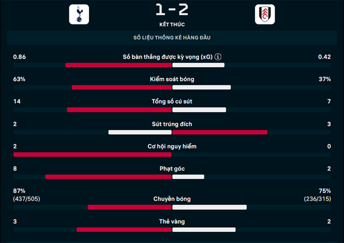 Sau đó, HLV Thomas Frank thay người với mục tiêu giành lại ít nhất 1 điểm. Các cầu thủ Fulham làm mọi cách để bảo vệ tỉ số trong khi Tottenham không thể ghi thêm bàn thắng. Chung cuộc, Tottenham thua 1-2 ngay trên sân nhà trước Fulham và rơi xuống đứng thứ 10 trên BXH.