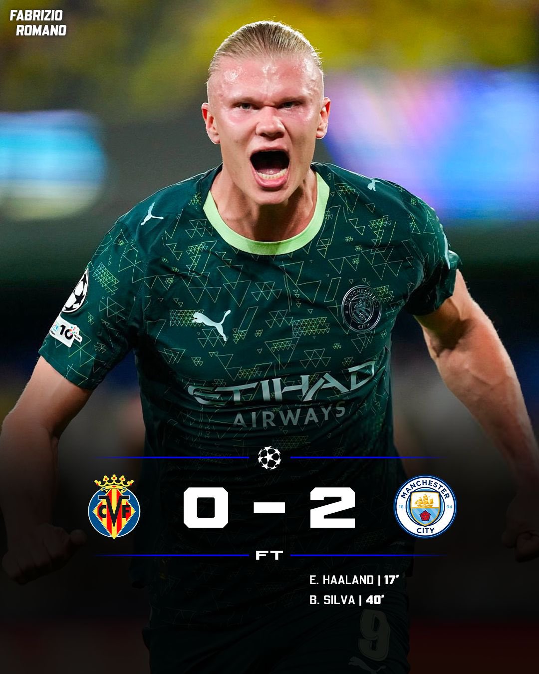 Ngay sau tiếng còi khai cuộc, khung thành Villarreal rung chuyển dữ dội trước những đợt tấn công như vũ bão từ Man City. Kết quả, đại diện La Liga chỉ cầm cự tới phút 17 trước khi bị chân sút đang vào phom là Erling Haaland sút tung lưới, mở tỷ số cho Man City.