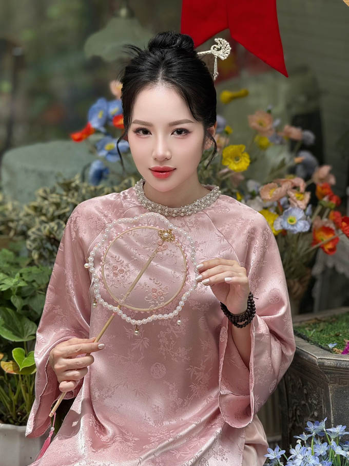 Mới đây, cô gái xinh đẹp này khiến cộng đồng mạng "rần rần" khi diện áo dài màu hường thiết tha. Đầu búi tóc đeo trâm cài còn tay cầm quạt cách điệu. Nhìn những bức hình nhẹ nhàng nhưng đầy quyến rũ của Loan Barbie, các fan không khỏi trầm trồ.