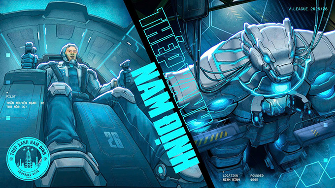 Thép Xanh Nam Định: Xuất hiện đầu tiên trong Promo của mùa giải là đội bóng đương kim vô địch – CLB Thép Xanh Nam Định với 2 lần liên tiếp lên ngôi ở giải đấu danh giá nhất Việt Nam (mùa giải 2023/24 và 2024/25) và hình ảnh Thủ môn Trần Nguyên Mạnh (26). Robot được mô tả như những người “bảo vệ chiếc cúp V.League” cùng sự khắc họa hình ảnh cặp Nghê đá đền Trần Nam Định, với trường năng lượng tạo hình từ họa tiết trên cửa đền Thiên Trường.