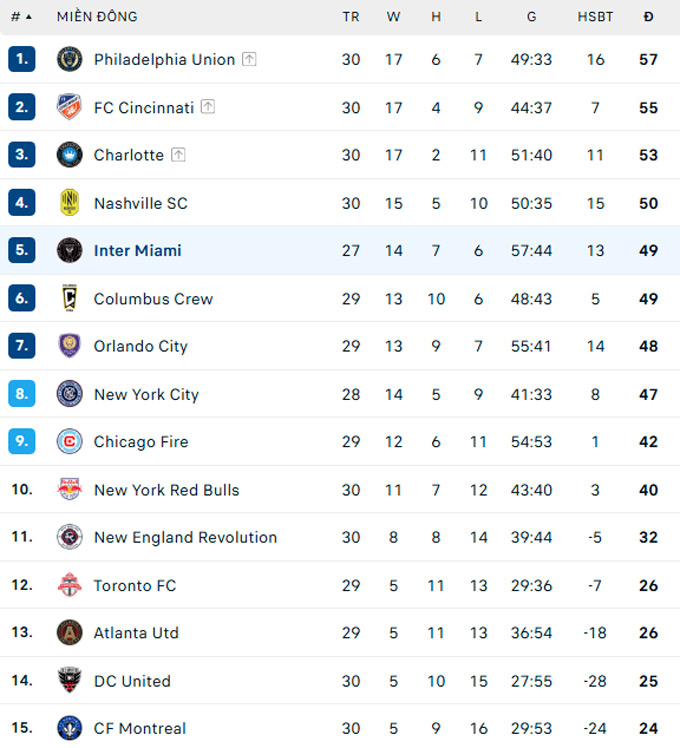 Lúc này, Miami đang xếp thứ 5 trên BXH MLS khu vực miền Đông với 49 điểm, kém đội đầu bảng Philadelphia 8 điểm. Ở vòng tiếp theo, Messi cùng các đồng đội sẽ tiếp đón DC United vào ngày 21/9.