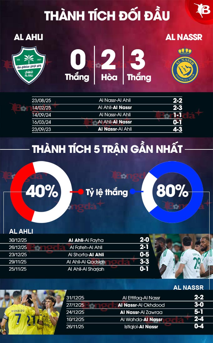 Dưới sự dẫn dắt của HLV trưởng Matthias Jaissle, Al Ahli đã cân bằng tốt giữa các trận đấu ở giải quốc nội và những thành công đáng kể ở các giải đấu cúp, nổi bật nhất là chiến thắng tại Siêu cúp Saudi Arabia. Họ đã đánh bại chính Al Nassr vào tháng 8/2025 với chiến thắng 5-3 trên chấm phạt đền sau trận hòa 2-2 trong thời gian thi đấu chính thức để giành danh hiệu và tạo lợi thế tâm lý trước cuộc đối đầu lần này giữa hai đối thủ.