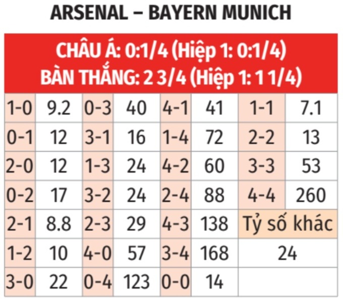 Dự đoán tỉ số Arsenal vs Bayern Munich