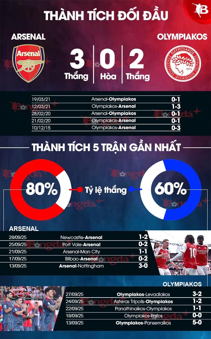 Phân tích phong độ Arsenal vs Olympiakos