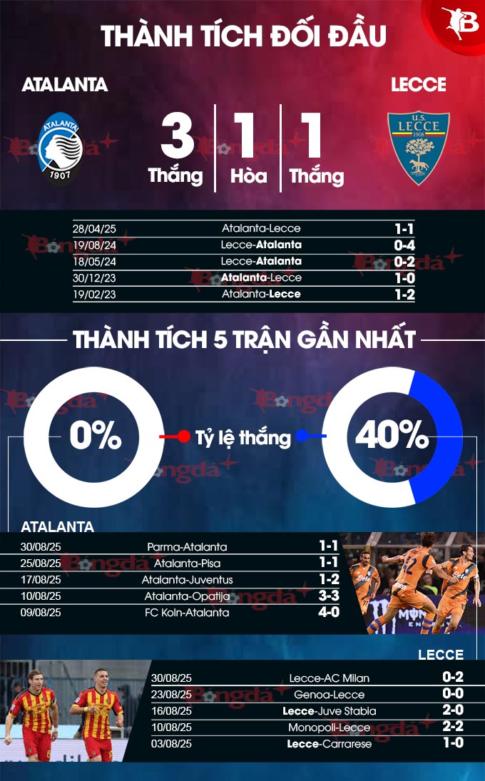 Trước đối thủ Lecce đang thi đấu kém thuyết phục từ đầu mùa giải, Atalanta với thực lực nhỉnh hơn cộng thêm lợi thế sân nhà đang tự tin hướng đến thắng lợi đầu tiên ở mùa giải này.