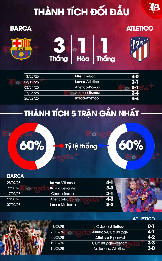 Phân tích phong độ Barca vs Atletico