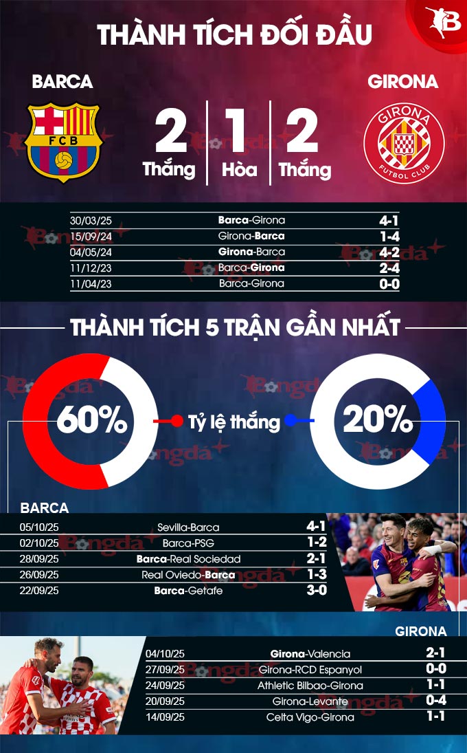 Trong cả 2 lần chạm trán Barca gần đây, Girona đều gặp "ác mộng" khi bị đối phương vùi dập không thương tiếc. Khi Girona thua kém Barca về mọi mặt, họ đơn giản là không có cơ sở nào để có thể kỳ vọng sẽ phá được dớp hay để đội bóng của HLV Flick bắt nạt.