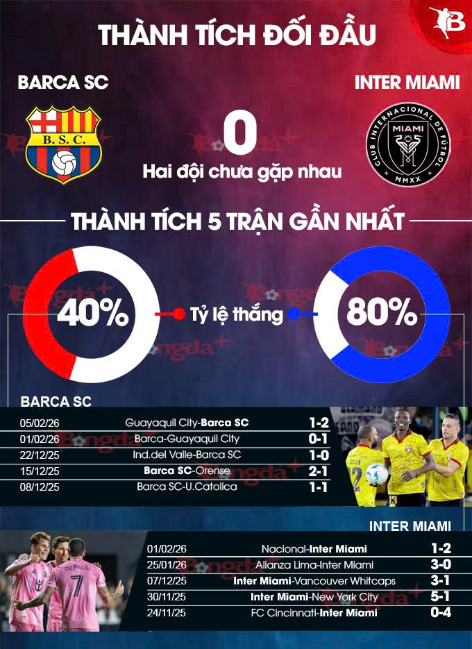 Trên sân nhà gần đây, Barcelona SC chỉ thắng 3/10 trận, tính trên mọi đấu trường. Còn Inter Miami, họ thắng 4, hòa 1 và thua 2 ở 7 trận sân khách vừa xong.