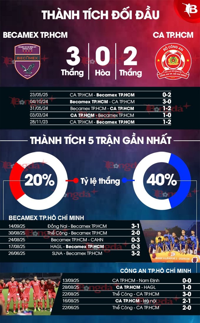 Phân tích phong độ Becamex TP.HCM vs Công an TP.HCM