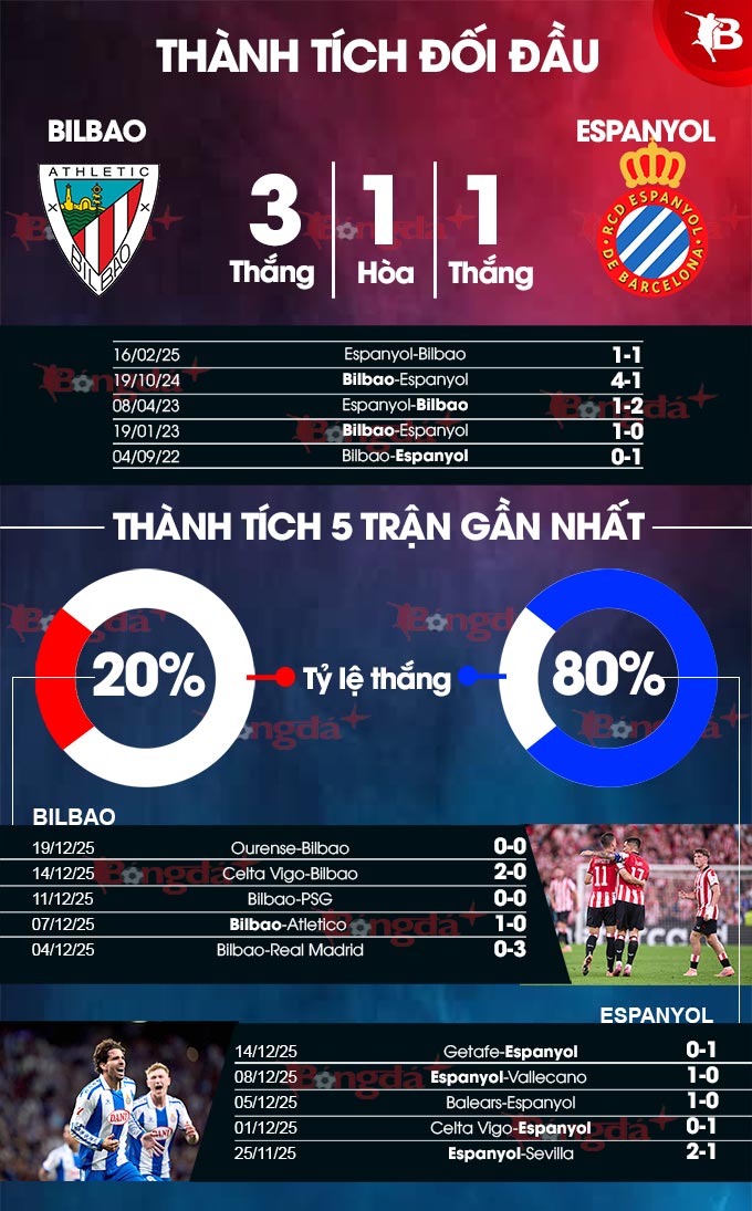 - Nhận định THẮNG THUA Bilbao vs Espanyol, 03h00 ngày 23/12
