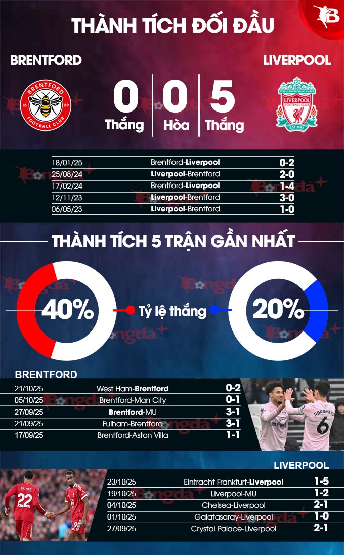 Ngay cả khi có lợi thế sân nhà và đang rất hưng phấn sau chiến thắng trước West Ham, Brentford vẫn chẳng thể phủ nhận thực tế họ thua kém Liverpool trên mọi phương diện. Căn cứ vào chuyện Liverpool đã thắng cả 5 trận gặp Brentford gần nhất (4 trong số này là những trận họ giữ sạch lưới), sẽ không bất ngờ nếu các vị khách lại duy trì thói quen hay bắt nạt được đối phương.