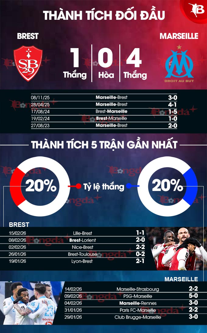 Phân tích phong độ Brest vs Marseille