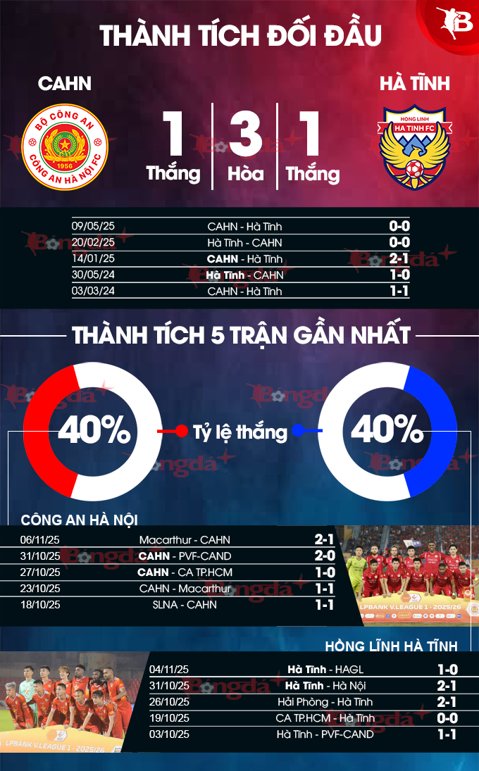 Đá sân nhà, lại có lực lượng tốt với dàn hảo thủ của bóng đá Việt, nên CAHN được đánh giá cao hơn trong cuộc so kè này cũng là điều dễ hiểu. Tuy nhiên, trong lịch sử đối đầu, CAHN và Hà Tĩnh lại khá cân bằng nhau. Đặc biệt ở mùa giải 2024/25, khi đang có lực lượng rất mạnh, nhưng CAHN cũng chỉ có được 1 điểm trước Hà Tĩnh ở cả hai trận lượt đi và về. Vì thế, đây là điều thầy trò HLV Mano Polking cần phải lưu tâm.