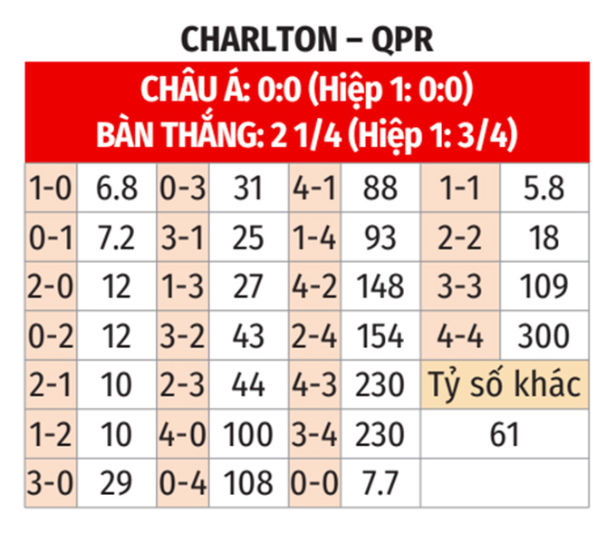 Với những phân tích nói trên, rất có thể QPR sẽ thắng theo châu Á lần này. Kịch bản hiệp 1 khan hiếm bàn thắng cũng rất dễ xảy ra.