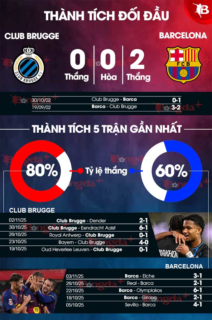 Phân tích phong độ Club Brugge vs Barca