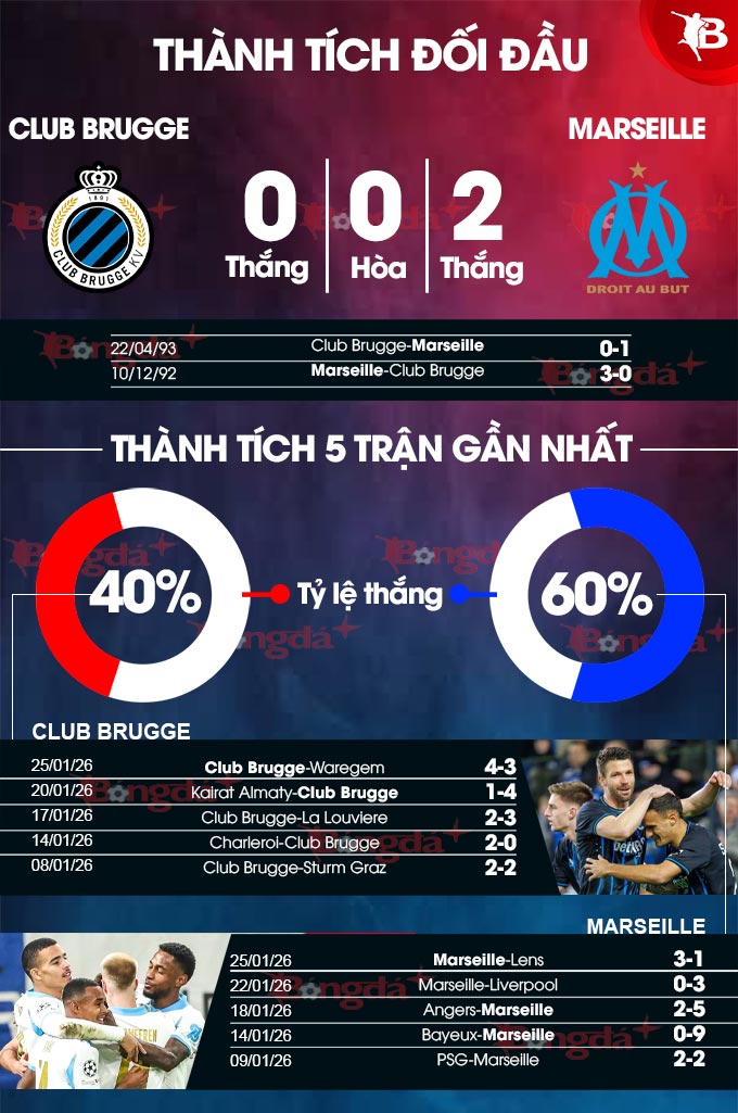 Phân tích phong độ Club Brugge vs Marseille