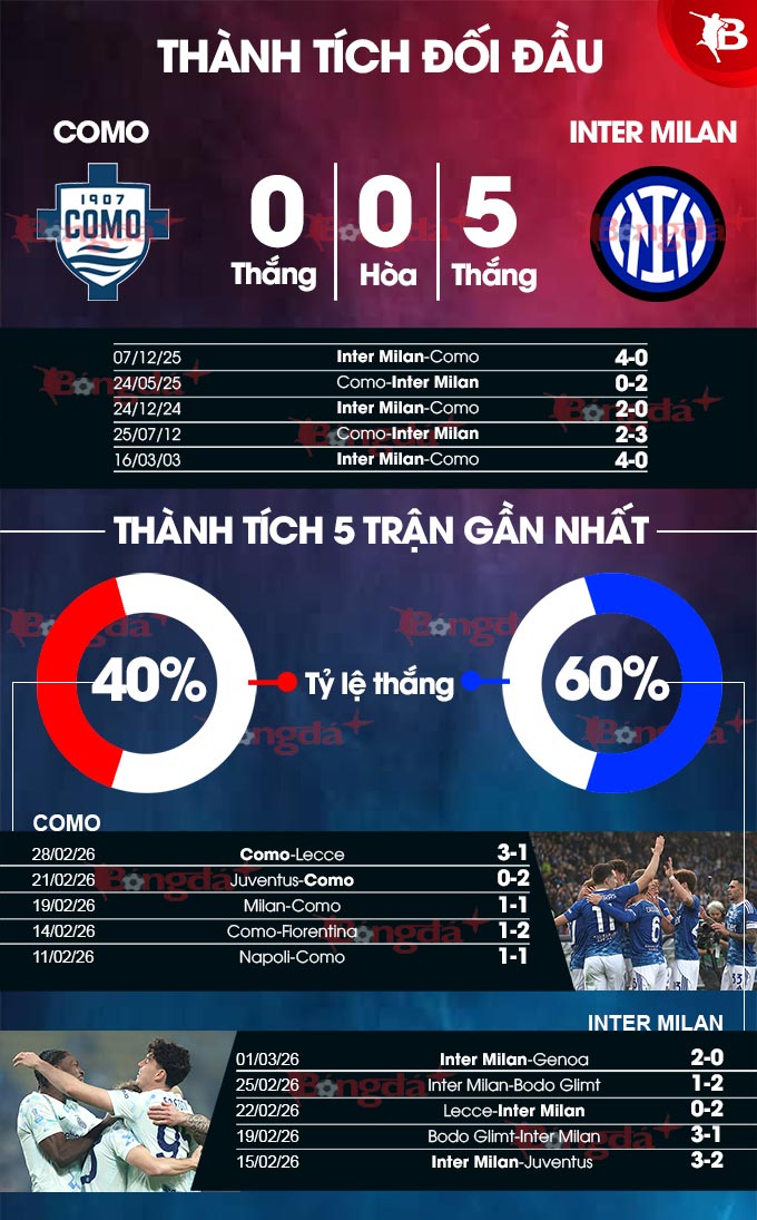 Không thể phủ nhận Como có phong độ tương đối ấn tượng vào thời điểm hiện tại, với chỉ 1 thất bại ở 9 trận gần nhất (5 thắng, 3 hòa). Song, chừng ấy là chưa đủ để Como có thể ngăn chặn được cơn giận dữ của Inter sau khi họ bị loại khỏi Champions League, giải đấu mà họ đã vào tới chung kết ở 2/3 mùa trước đó.