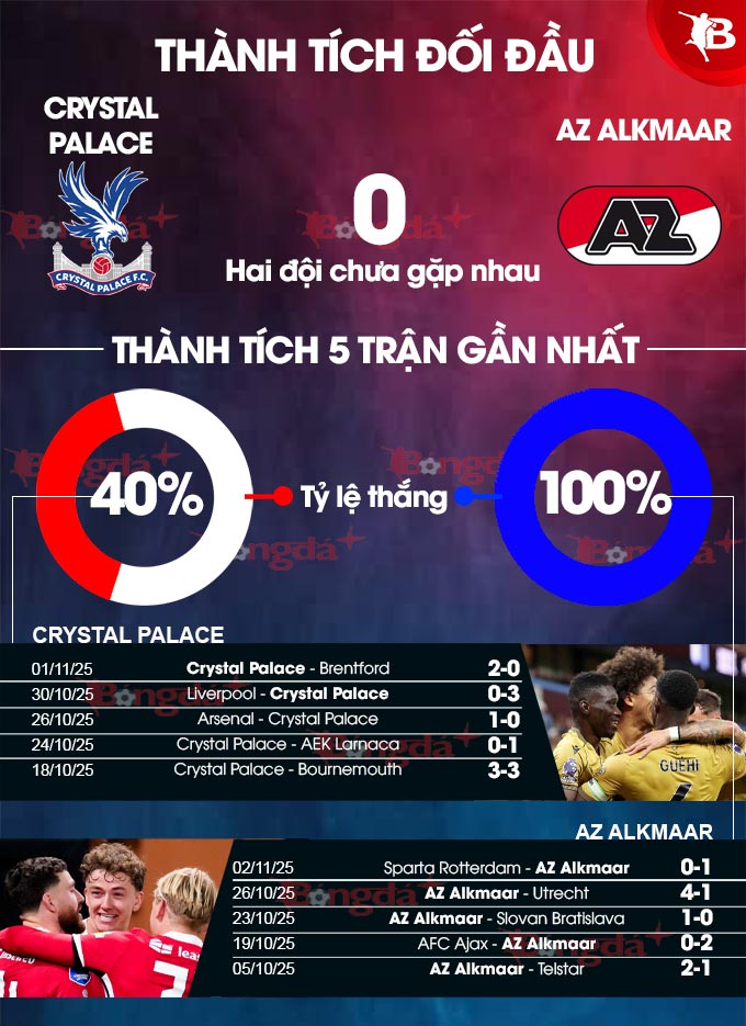 Xét về phong độ, Crystal Palace sau khi liên tiếp để thua AEK Larnaca và "ông lớn" Arsenal với cùng tỷ số tối thiểu đã có phản ứng tích cực. Bằng chứng là họ vừa lần lượt đánh bại cả Liverpool lẫn Brentford. Ở 2 trận đấu này, Crystal Palace ghi tới 5 bàn mà không hề để lọt lưới. Với tâm lý thăng hoa cộng thêm lợi thế sân nhà, Crystal Palace có gặp thử thách lớn mang tên AZ thì họ vẫn đủ khả năng kiếm trọn 3 điểm.