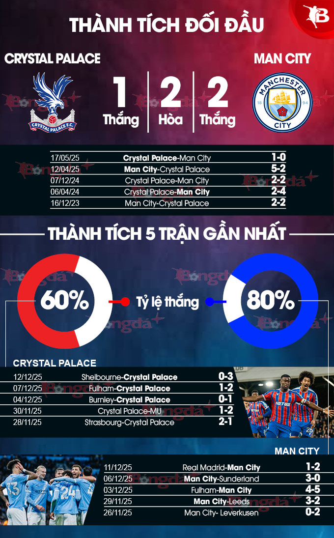 Phân tích phong độ Crystal Palace vs Man City