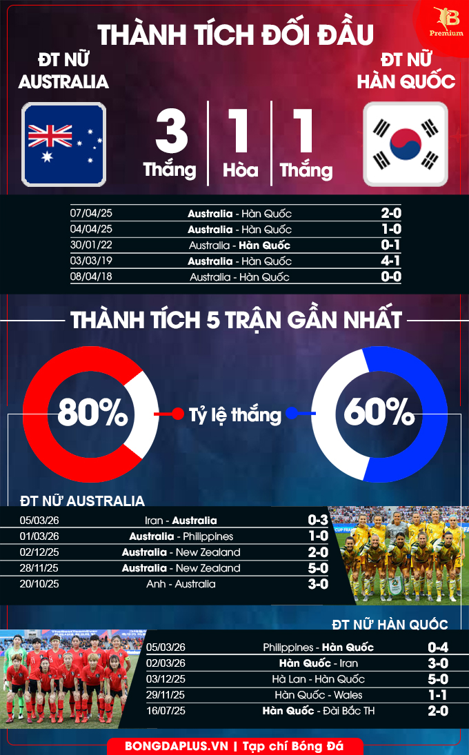 Phân tích phong độ ĐT nữ Australia vs ĐT nữ Hàn Quốc