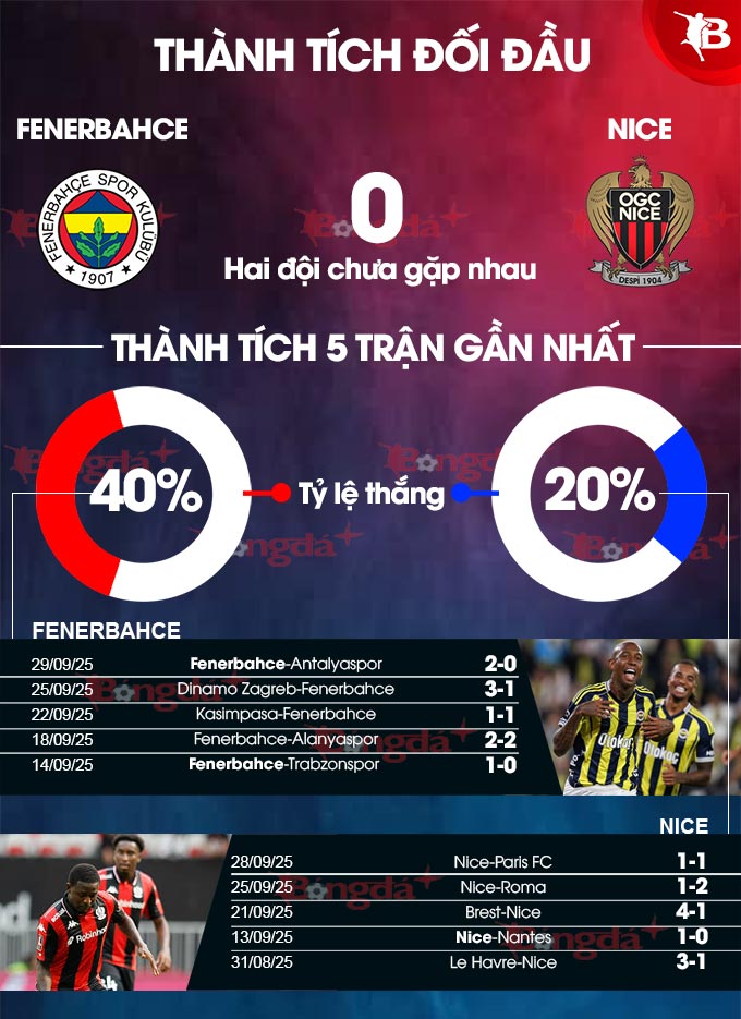 Nice đang có chuỗi trận sân khách vô cùng tệ hại. Phong độ chung gần đây cũng trồi sụt. Còn Fenerbahce lại thi đấu rất ấn tượng trên sân nhà, nên nhiều khả năng trận này họ cũng tiễn khách trắng tay rời Thổ Nhĩ Kỳ.