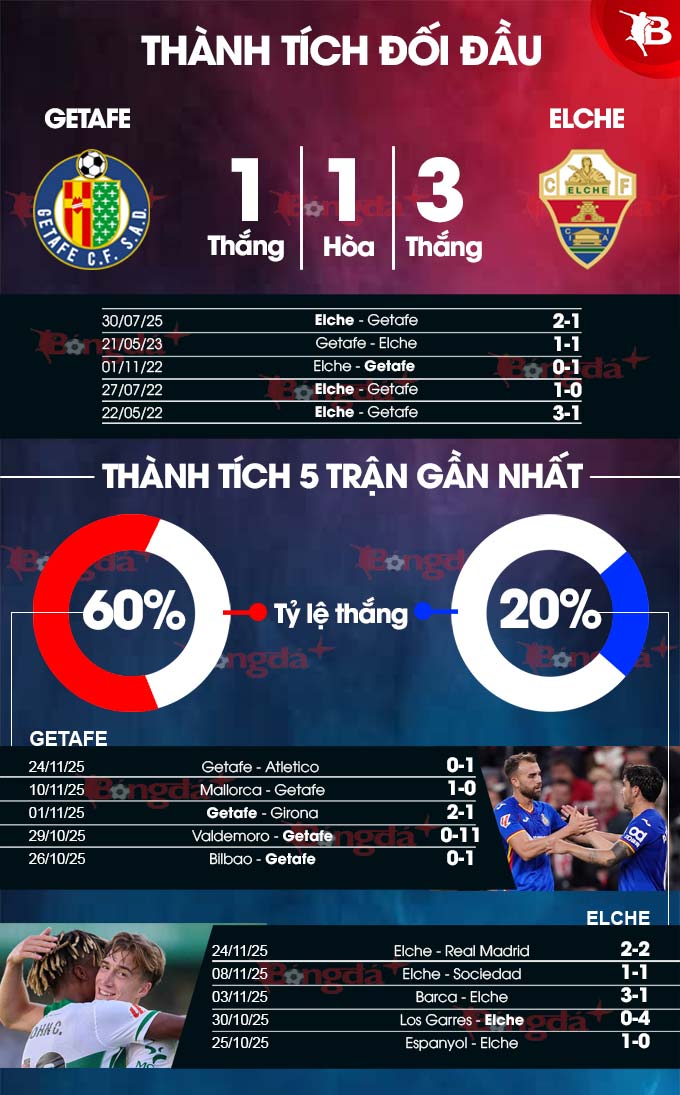 - Nhận định GÓC Getafe vs Elche, 03h00 ngày 29/11