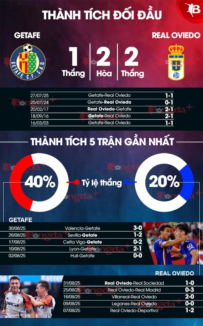 Với ưu thế sân nhà và chỉ phải tiếp đón tân binh như Real Oviedo, các cầu thủ Getafe nhiều khả năng sẽ tận dụng triệt để ưu thế của mình để có thắng lợi.