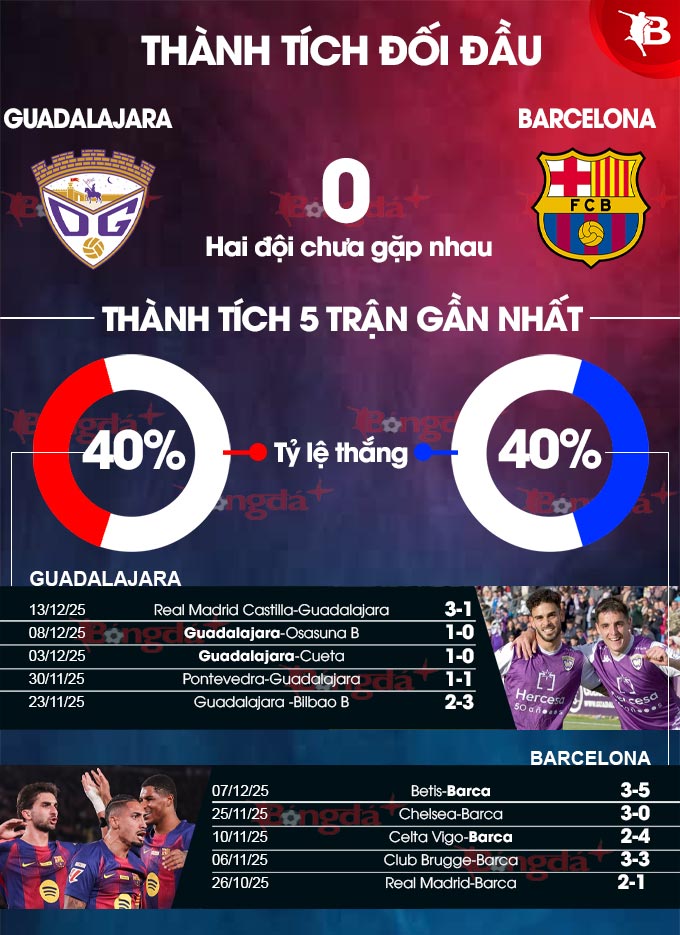 Barca đang có phong độ tốt khi thắng liền 5 trận gần nhất. Đây là lần đầu tiên trong lịch sử Barca chạm trán Guadalajara, đội bóng đang được dẫn dắt bởi HLV Pere Marti, người từng làm việc ở Villarreal, Malaga và Elche. Hiện tại, Guadalajara đang thi đấu ở giải Hạng Ba Tây Ban Nha, tạm đứng thứ 17 với 17 điểm sau 15 trận đã đấu. Trên sân nhà, Guadalajara cũng chơi dở tệ khi chỉ thắng 2 trong 8 trận gần nhất. Nhìn chung, Guadalajara là một "mồi ngon" dành cho các ngôi sao bên phía Barca tập dứt điểm và có thêm hưng phấn.