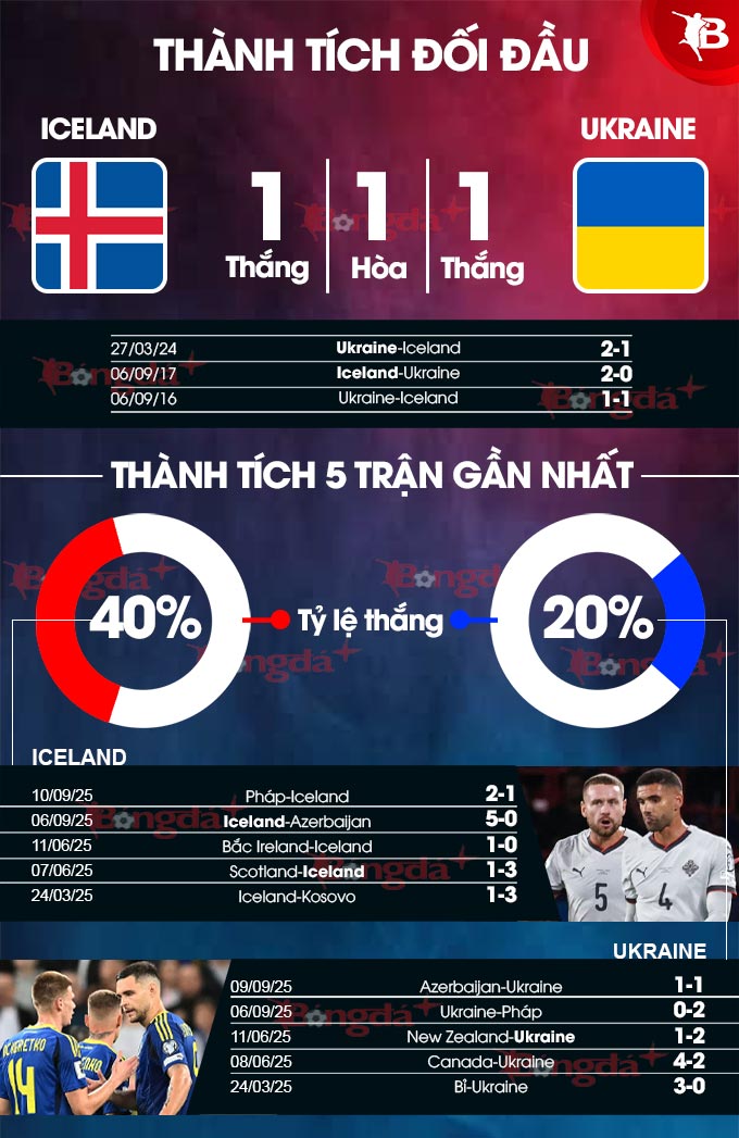 - Hai đội cùng ghi bàn: 3/4 trận sân nhà vừa qua của Iceland đều không có đội "tịt ngòi". 3/4 trận gần nhất của Ukraine cũng đều có đội thành công trong việc giữ sạch lưới.
