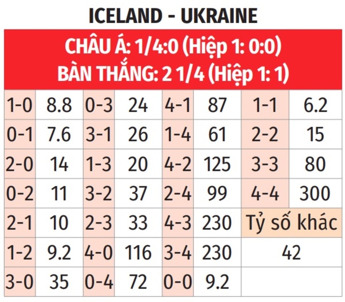 - Iceland thắng theo châu Á: Trong khi Iceland vừa thắng 3/4 trận theo châu Á thì điều ngược lại đã diễn ra ở 4/5 trận vừa qua của Ukraine. Khi các vị khách tỏ ra kém duyên như vậy, đứng về phía họ xem ra không phải là giải pháp an toàn.