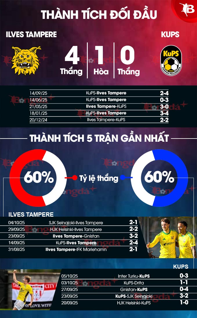 Với nhiều ưu thế, đặc biệt là thành tích sân đối phương, nhiều khả năng KuPS sẽ pha dớp thành công tại Ilves Tampere để chấm dứt chuỗi 6 trận không thắng trước đó.
