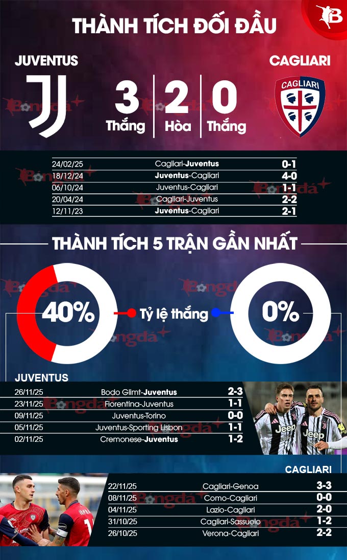 Việc Juventus áp đảo Cagliari khi đối đầu thì không có gì lạ, khi Bianconeri thắng 8/9 lần gần nhất tiếp đón Cagliari trên sân nhà.