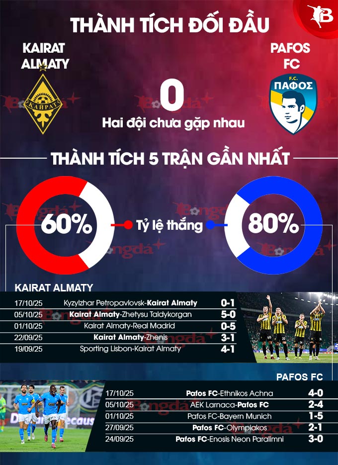 Mặc dù cả hai đội đều là tân binh ở giải đấu này, Pafos FC có vẻ là đội bóng được đánh giá nhỉnh hơn. Kinh nghiệm từ đấu trường châu Âu mùa trước và khởi đầu tốt tại giải VĐQG Đảo Síp đã mang lại cho họ lợi thế ở trận này. Về phần mình, sự thống trị trong nước của Kairat Almaty rất ấn tượng, nhưng họ thiếu kinh nghiệm ở sân chơi danh giá nhất lục địa già. Và do đó, nhiều khả năng đội khách sẽ ca khúc khải hoàn khi rời Almaty.